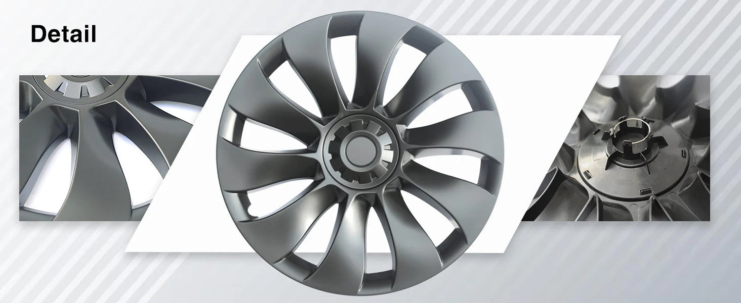 Transform your Tesla Model 3 with Yeslak Uberturbine Wheel Covers, meticulously crafted to elevate your 19'' Sport Wheels. These covers not only provide a sleek, aerodynamic design that boosts your battery range for extended mileage, but they also shield your rims from curb damage.