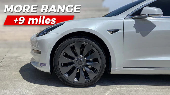 Benefit to the aerodynamic low windage design, this 10 spokes hub caps can effectively reduce your Model 3's energy consumption compared to driving with no hubcaps. More range to the car which is nine miles. Efficiency benefits to the car which is really awesome.